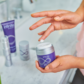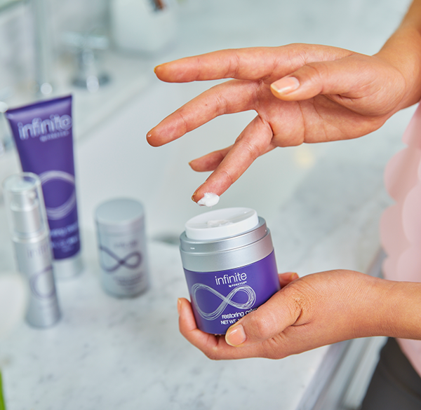 To finish off this moisturising powerhouse, we’ve added the latest chemistry to provide a new sugar structure that improves skin’s water barrier and retention. As a finishing touch, Infinite Restoring Crème seals in all of the powerful benefits to keep your skin nourished.